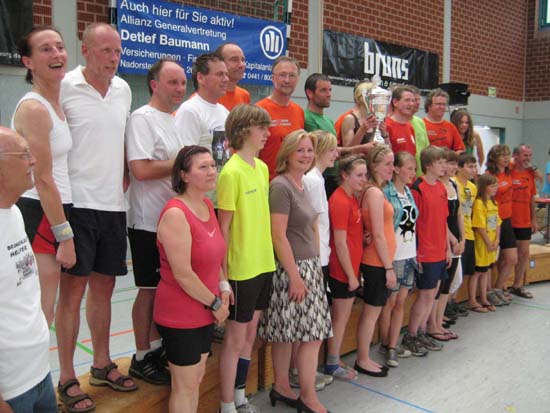 Petra Averbeck (Mitte) überreichte beim diesjährigen "Brunnenlauf" den großen Eversten-Pokal des Bürgervereins an 41 Läuferinnen und Läufer des SV Ofenerdiek, der mit den meisten Sportler/innen am niedersachsenweit bekannten Brunnenlauf erfolgreich teilgenommen hat. Als nächste Anwärter des begehrten Wanderpokals des Bürgervereins Eversten machten 40 Starter des Stadtoldenburger Sportvereins "Schwarz Weiß" erfreulich auf sich aufmerksam. Petra Averbeck begrüßte für den Bürgerverein ausdrücklich, dass der Erlös des Brunnenlaufs für den weiteren Ausbau der Finnenlaufbahn in Eversten - Hundsmühler-Höhe zur Verfügung gestellt wird.