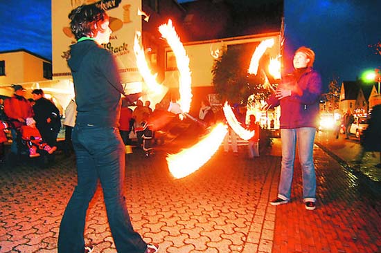 Wirbelnde Fackeln: Besondere Vorführungen gehören - wie hier bei einem früheren Lichterfest - stets zum Programm an der Hauptstraße.