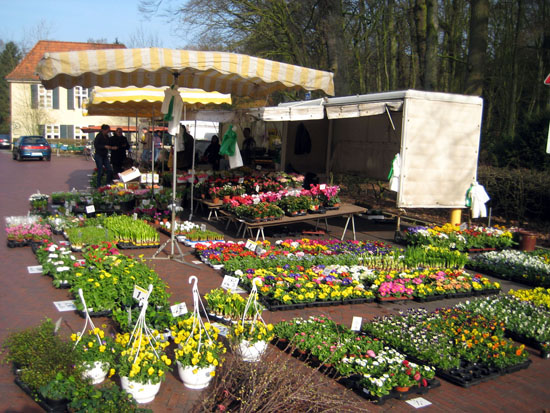 Farbenfroh begrüßen die Wochenmärkte auf dem Marktplatz Eversten den Frühling. Kräftig erfreuen die bunten Farben wieder und öffnen sich die Knospen von Krokussen sowie vieler ansehnlicher Frühlingsboten.