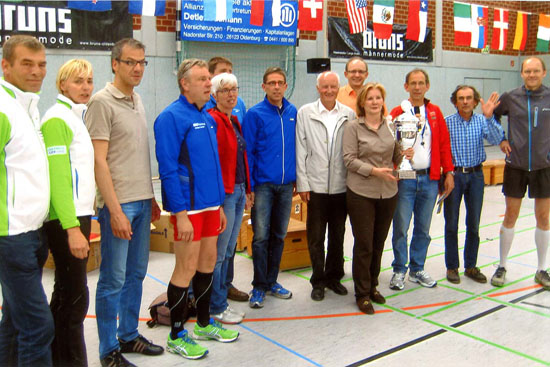 An der Pokalübergabe nahmen teil: Holger Vosgerau (Barmer GEK) und Heike Drechsler, die mehrfache Welt- und Europameisterin, sowie Professor Dr. Jürgen Dieckert, Schirmherr des „Brunnenlauf“mit Sportleiter Dirk Spekker vom TuS Eversten e. V.