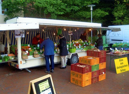 Seit Oktober bietet der seit 1992 tätige ökologische Gemüsebetrieb "Kleiner Krauter" seine Waren - Gemüse und Obst - auf den Mittwochs- und Freitags- Wochenmärkten auf dem Marktplatz Eversten an. Dieser Bio-Stand tritt an die Stelle von "Gemüsehof Diecks". Die seit sieben Jahren hier erfolgreich tätig gewesene Marlene und Heino Diecks wollen zum Jahresende "in Rente" gehen. Der EMA e. V. - Träger des Marktgeschehens in Eversten - sprach jetzt den Ausscheidenden namens der örtlichen Bürgerschaft einen herzlichen Dank für die stets gute, wohnungsnahe Kundenbetreuung und -versorgung aus.Der neue Markstand will isch mit seinem reichlichen Warenangebot nachfragegemäß aufstellen. Der EMA e. V. wählte inzwischen einen neuen Vorstand, dem Vorsitzender Rainer Zemke (für den Bürgerverein), Rainer Bracklo (Blumen Bracklo) sowie Feremez Düman (Inhaber von Fisch Weers) angehören. Die EMA-Geschäftsstelle ist weiterhin unter Telefon 0441/57942 erreichbar.