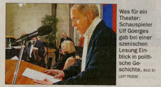 OLDENBURG - Die Geschichte eines Bauwerkes so darzustellen, dass 200 Menschen auch nach gut zwei Stunden aufmerksam und mit Interesse zuhören, gelingt nur, wenn Profis am Werk sind – wie bei einer Feier der Oldenburgischen Landschaft am Donnerstag zum 100-jährigen Bestehen des Landtagsgebäudes: Anhand einer szenischen Lesung ausgewählter Reden von namhaften Politikern stellte Schauspieler Ulf Goerges die wechselvolle Geschichte dessen dar, was in der Politik so ablief.